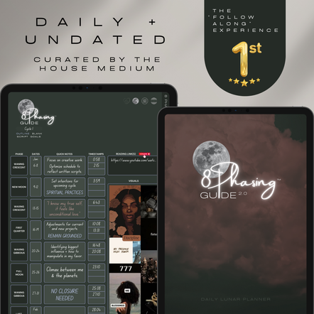 Your guide provides you with vision boards + outlines that serve as a blueprint for your upcoming lunar cycle, when combined with a "focus' tarot reading you are equipped with the tools to begin or elevate your spiritual journey! The answers shared for each topic in your focus reading, given by the house medium, are direct answers from your spiritual team. A spiritual reading that brings structure and trusted advice!